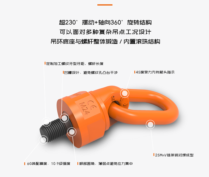 冠航Y(jié)D083-3B美制萬向旋轉(zhuǎn)吊環(huán)由內(nèi)外兩個(gè)環(huán)組成,它們之間通過球形滾珠或滾柱連接,能夠?qū)崿F(xiàn)水平360度旋轉(zhuǎn)和上下180度翻轉(zhuǎn),提供更大的靈活性和自由度。