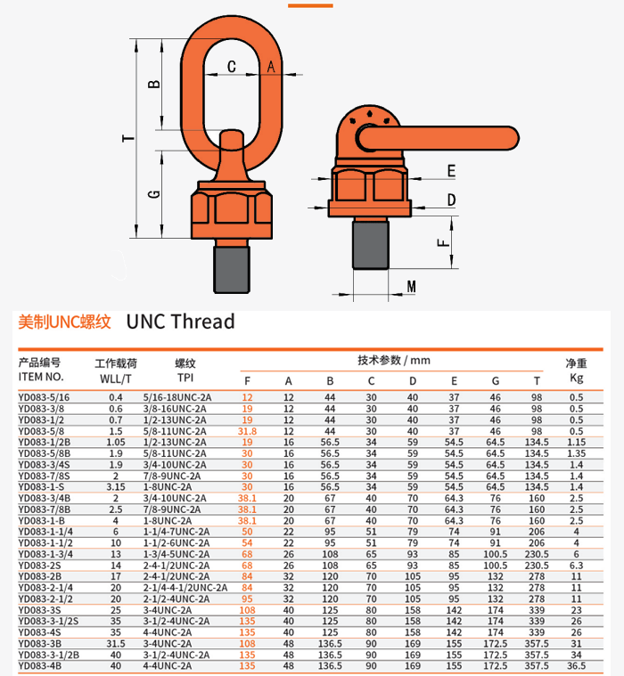 YD083-3B萬向旋轉(zhuǎn)吊環(huán)美制UNC螺紋